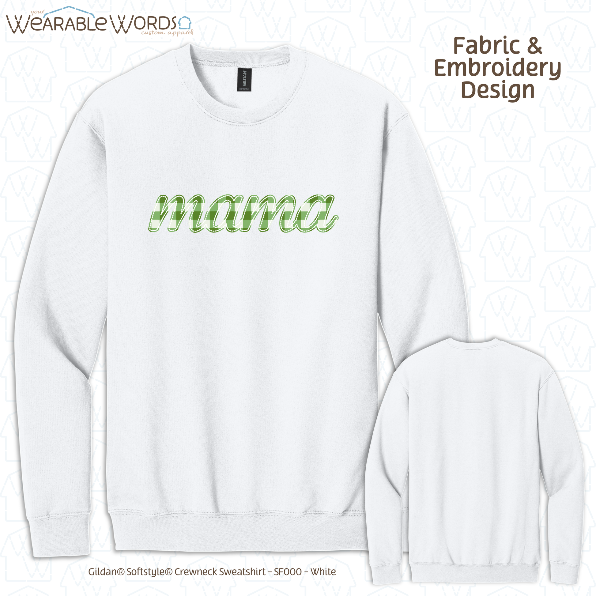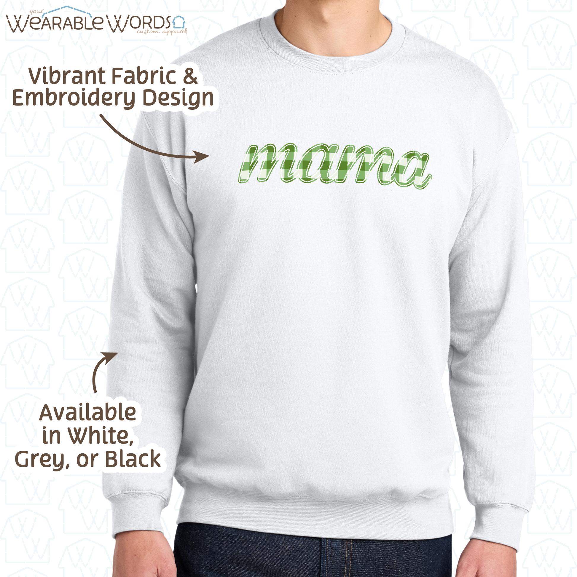 Green Plaid Mama Embroidered Crewneck | White, Grey, or Black Sweatshirt